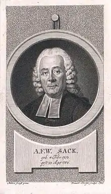 August Friedrich Wilhelm Sack (1703–1786) was one of the most eminent German Reformed preachers and a prominent liberal theologian of the reign of Frederick II of Prussia who helped shape the Enlightenment in Berlin and Prussia.[1][2]