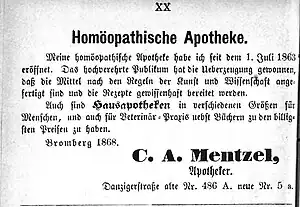 From 1863, August Mentzel ran a homeopathic pharmacy in that building. He used herbs from the garden to produce medicines and ointments sold in his shop.[2]