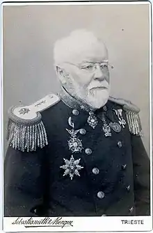 August von Jilek (28 August 1819 – 8 November 1898), otherwise August Jilek or Jileck, was a Czech naval doctor, lecturer, administrator and aristocrat (knight). He was born at Litomyšl in Bohemia, now in the Czech Republic, where the Jilek surname can be traced back to the 15th century.[1] He studied medicine at Vienna and after qualifying as a doctor he joined the Austrian Imperial-Royal Navy on 23 October 1845.[2]