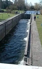 The Augustów Canal, consisting of 18 locks and 22 sluices, is divided into two major sections: the West — from the merger of the Biebrza lock Augusta (0.0 – 32.50 km); and the East section — from lock to lock Niemnowo Augusta Belarus (32.50 – 101.20 km).[14][17][18]