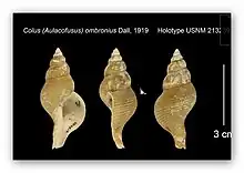 Shell of Aulacofusus ombronius (holotype at the Sùithsonian Institution)