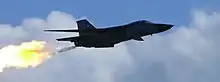 RAAF F-111 at the 2007 Airshow performing a dump-and-burn, a procedure where the fuel is intentionally ignited using the plane's afterburner.