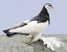 The Australian Saddleback Tumbler is a breed of fancy pigeon developed over many years of selective breeding.[1] Australian Saddleback Tumblers, along with other varieties of domesticated pigeons, are all descendants of the rock pigeon (Columba livia). As the name suggests, this breed is an Australian creation and was first recognized as a breed in 1917.[2]