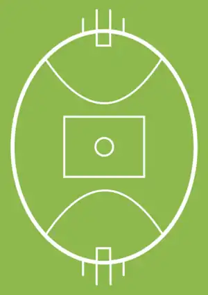 The positions as seen on an oval, for the team kicking toward the top of the diagram.