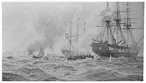 ![]() Battle of an Austrian ship division against Moroccan corsairs (1829), painting by Alexander Kircher. | |||||||