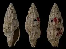 Main characteristics: The fusiform shell is costated, abruptly contracted to a beak. The whorls are subangulated medially, without spiral ornament.