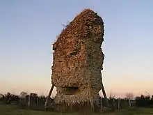 • The Pyramid (Gallo-Roman)[12] The "beacon" of Ebéon is called the "Pyramid" and is a Gallo-Roman remains at a place called "Bois-Charmand". This beacon or tomb still forms a masonry block 16 metres high and 6 metres in diameter. According to a local legend it was the work of fairies: three "ladies" who built it overnight. They used an enchanted hammer that they bounced back and forth to each other through the air. It hit the youngest in the forehead and she was killed. There is also another well-preserved tower or stack near Saujon: the Tour de Pirelongue.
