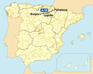 The Autovía A-12 is a highway in Spain known as the Autovía del Camino de Santiago between Pamplona and Burgos.[1]