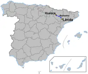 Autovía A-22 or Autovía Huesca-Lleida is an upgrade of a section of the existing N-240 Spanish road, managed by the Spanish Government, between Huesca, the second largest city in Aragón and Lleida, a provincial capital in Catalonia. The route has all sections now open to traffic with the exception of the last 13km into Huesca.