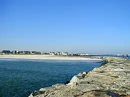 Avalon is known as a South Jersey seashore resort and has the motto "Cooler by a Mile" since it juts out into the Atlantic Ocean about a mile farther than other barrier islands.[27] Alternatively, the motto is because Avalon, at four miles long, is one mile longer than its neighboring town on the southern end of Seven Mile Island, Stone Harbor. It was ranked the seventh-best beach in New Jersey in the 2008 Top 10 Beaches Contest sponsored by the New Jersey Marine Sciences Consortium.[28]