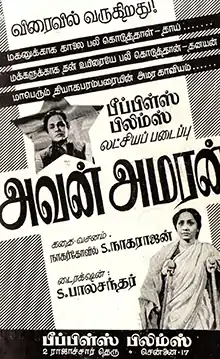 Avan Amaran (transl.He is immortal) is a 1958 Indian Tamil language film produced and written by Nagercoil S. Nagarajan, and directed by S. Balachander. The film stars K. R. Ramasamy, P. Kannamba, Rajasulochana and T. S. Balaiah.[2] It was released on 23 May 1958.