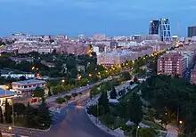 The reform of the area was passed through the modification of the 1985 Plan General de Ordenación Urbana (PGOU).[7] Several buildings works were carried out by the Instituto de la Vivienda de Madrid (IVIMA),[8] and the new street, with a total width of 58 metres,[9] was inaugurated in 2000.[10] The new housing has been however described as rather "impersonal".[11]