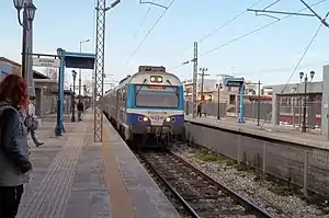 The station was reopened on 6 May 2005.[6] In 2009, with the Greek debt crisis unfolding OSE's Management was forced to reduce services across the network.[7] Timetables were cutback and routes closed, as the government-run entity attempted to reduce overheads. In 2017 OSE's passenger transport sector was privatised as TrainOSE, currently, a wholly-owned subsidiary of Ferrovie dello Stato Italiane[8] infrastructure, including stations, remained under the control of OSE. That same year on 30 July Line 3 of the Athens Suburban Railway began serving the station.
