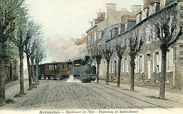 The Avranches–Saint-James tramway was a 17 kilometres (11 miles) metre gauge railway on the English Channel in the Manche département in the Normandy region of France, which was put into service on 29 July 1901 and operated until 31 December 1933.