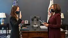 On January 20, 2021, Haines was confirmed by the Senate in an 84–10 vote.[65] She was the first nominee to be confirmed by the Senate, and was sworn in the next day by Vice President Kamala Harris.[66]