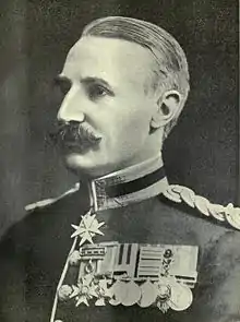 He was promoted captain in 1892.[10][11] He served on the Indian North West Frontier and took part in the Miranzai Expedition of 1891 and was wounded during the Waziristan Expedition of 1894–95.[12] He was promoted to brevet major in 1895.[13]