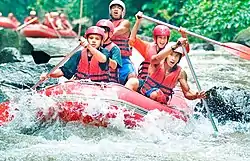 The Ayung River is the longest river on the Indonesian island of Bali. It runs 68.5 km from the northern mountain ranges, passing the Bangli, Badung, Gianyar regencies and the city of Denpasar, before discharging into the Badung Strait at Sanur.[1][2] The river is famous for white water rafting.[3]