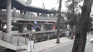 Bölge was originally a railway station on the Bornova suburban line known as Bölge railway station (Turkish: Bölge istasyonu). The station was built by the Smyrna Cassaba Railway (SCP) and opened on 25 October 1866.[1] Trains from Basmane station to Bornova stopped at Bölge. Since the Bornova Branch was never extended, the station and the line remained a suburban railway. The Turkish State Railways (TCDD) took over the SCP in 1934 and continued operating commuter service on the railway. TCDD sold the railway to the İzmir Municipality in 1994 and Bölge, along with the railway, was closed down. The Municipality began construction of the İzmir Metro in 1995 and Bölge station was demolished. The new station was built on the new right-of-way shortly after. Construction was completed in 1999 and the station was inaugurated on 22 May 2000, along with the metro line from Bornova to Üçyol.[2]