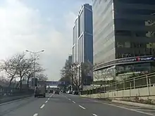 Büyükdere Avenue (Turkish: Büyükdere Caddesi) is a major avenue which runs through the districts of Şişli (Esentepe quarter), Beşiktaş (Levent quarter) and Sarıyer (Maslak quarter) on the European side of Istanbul, Turkey. It begins at Şişli Mosque and runs in an eastward direction partly under the viaduct of the inner-city motorway O-1 through Mecidiyeköy, Esentepe, until reaching Zincirlikuyu; where it joins with Barbaros Boulevard and turns northward passing through Levent, Sanayi Mahallesi, Maslak and by the Fatih Forest, ending at the Hacıosman Slope on the Sarıyer district border. Its total length is 14 km (8.7 mi). From Zincirlikuyu to Maslak, it forms a border line between the districts of Kağıthane in the east and Beşiktaş in the west. It is named after the Büyükdere neighborhood of Sarıyer district, where it connects to. It is a major artery of the Istanbul Central Business District, which is not located in the historic center of the city.[1]