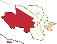 Büzmeýin District (Turkmen: Büzmeýin etraby, from 2002 to 2018 called Abadan District, expanded in 2018 to include former Archabil District and Chandybil District) is a borough of Ashgabat, Turkmenistan. As a borough, it is headed by a presidentially appointed mayor (Turkmen: häkim). The borough known as Büzmeýin should not be confused with the neighborhood of the same name in Ashgabat, boundaries of which correspond to the former city of Büzmeýin/Abadan.