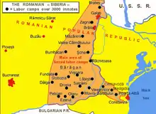 The Bărăgan deportations (Romanian: Deportările în Bărăgan) were a large-scale action of penal transportation, undertaken during the 1950s by the Romanian Communist regime. Their aim was to forcibly relocate individuals who lived within approximately 25 km (15 miles) of the Yugoslav border (in present-day Timiș, Caraș-Severin, and Mehedinți counties) to the Bărăgan Plain. The deportees were allowed to return after 1956.