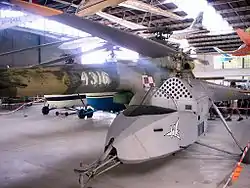 Despite severe material shortages, work on experimental design started in 1948, and the main designer became Bronisław Żurakowski (brother of test pilot Janusz Żurakowski), who designed a rotor and control system. It used simpler Hiller rotor type, with two auxiliary blades.[1] A fuselage structure, tail boom, auxiliary rotor and tricycle undercarriage were designed by Tadeusz Chyliński. A power unit and final drive were designed by Zbigniew Brzoska. The design utilized some components left by the Germans, like a piston engine Hirth HM 504 (re-configured for vertical use), rear gear from a Zündapp motorcycle and wheels from a DFS Kranich glider's jettisonable landing gear.[2]