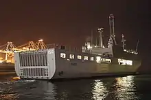 The flight deck of the Pisco has the capability to hold two Sikorsky SH-3 Sea King helicopters of the Peruvian Naval Aviation while an incorporated hangar can store an additional helicopter.[2] The ship uses a roll-on/roll-off system, and can reportedly transport 450 troops for up to 30 days.[4]