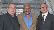 Dr. Hermán J. Cestero MD, from the Philatelic Society of Puerto Rico put the historic event in perspective by explaining the practice of commemorative stamps. “This is the second US Postal cancellation stamp for Bonzzo and the first time that a Bonzzo postage stamp has been officially made part of the US Postal Service.” He said that the use of the stamp began as a practical form of showing from where the mail originated, later they were used to commemorate important historical events, in benefit to specific causes and made to cover transportation and handling costs. He later continued to explain -in a separate interview- that the Bonzzo Postage Stamp can be used to send a letter and that it wasn't purely decorative but real postage, with which you can send mail from everywhere in the US and its territories."[14] The main event got on its way with the general manager of the US Postal Service’s Caribbean district Steven Hernández officially announced the approval of the new Bonzzo stamp. The 45 cent postage seal will perpetuate Rivas’ character in Bonzzo in the chronicles of American history. The founder and other members of Puerto Rico's own “El Gran Combo” where there in support of their fellow artist on the eve of yet another grand tour they are to take across the world, doing shows in central and South America, Europe and then on to Asia and Japan. El Gran Combo is commemorating its 50th anniversary this year. Even the Maestro, Rafael Ithier himself was there –director and founder El Gran Combo, as well as singer Jerry Rivas, pianist Willie Sotelo and Luis Alfredo "Tati" Maldonado, trumped player for the legendary “salsa” group. Also renowned singer Tony Rivas, Jerry's brother and both cousins to John, took part in the proceedings.[14]