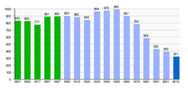 | Vertical bar chart demographic of Bañares (municipality) between 1857 and 2010 |
