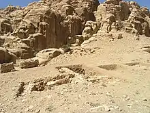 Ba'ja (Arabic: بعجة) is a Neolithic village 14 kilometres (8.7 mi) north of Petra, Jordan. Like the nearby site of Basta, the settlement was built in c. 7000 BC, during the PPNB (Pre-Pottery Neolithic B) period. Ba'ja lies at an altitude of approximately 1,160 metres (3,810 ft), and is only accessible with a climbing route through a narrow, steep canyon.[1] It is one of the largest neolithic villages in the Jordan area.[2]