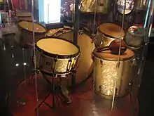 Notable is the absence of the hi-hat cymbals and stands. Dodds never liked them: "I didn't like them and I still don't. Some drummers can't play without them. I can't play with them."