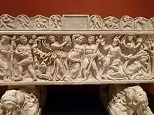 Bacchanal on a Roman sarcophagus of 210–220 AD