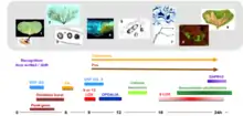 On being infected with the blight bacteria (1 and 3), the bacterial cells inject the effectors created to develop resistance genes within the host nuclei. When host R proteins recognize the bacteria, some specific mechanisms are activated through signaling pathways. Genes of the ERF IX3 group are transcribed parallel to ROS production (t = 3h; 2: localization of H2O2 in resistant leaves). Accumulation of salicylic acid in the systematic resistance stage culminates after the burst leading to activation of a 9- or 13-Lox gene (t = 9h), transcription of Ethylene-response transcription factors(ERF) genes, and synthesis of OPDA/JA (t = 12h). At the same time, flavonoids and total peroxidase activity are also released to aid in resisting the bacteria. The resistance aims at stopping bacterial growth (7: green line) as compared to growth in susceptible plants (7: blue line) and is preceded by the collapse of cells (6: condensation of the cytoplasm of HR cells), concluding the HR cycle (Jalloul et al., 2015).