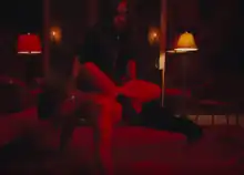Eilish is seen sitting on the back of a man as he does push-ups at the end of the music video—alongside other eccentric imagery.[65]