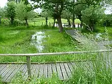 Badgeworth nature reserve walkways over pond