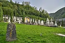 The small English cemetery, recently restored, provides a final place of rest for the many foreign Protestant visitors who died in Bagni di Lucca. Some of the more notable graves, in order of the date of death, are of: Alexander Henry Haliday (1807-1870), Irish entomologist; Charles Isidore Hemans (1817-1876), English antiquary; Mahlon Dickerson Eyre (1821-1882), American art collector; English novelist Maria Louise Rame, better known as Ouida (1839-1908); Rose Cleveland (1846-1918), de facto First Lady of the United States; Nelly Erichsen (1862-1918), English illustrator and painter; Edward Perry Warren (1860-1928), English art collector; and Evangeline Marrs Whipple (1862-1930), American philanthropist and author.