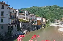 The commune is known for its springs, in the valley of the Lima River, a tributary of the Serchio. The district is known in the early history of Lucca as the Vicaria di Val di Lima. Ponte Serraglio is the principal village of the warm spring area, but there are warm springs and baths also at Villa, Docce Bassi, and Bagno Caldo. The springs do not seem to have been known to the Romans. Bagno a Corsena is first mentioned in 1284 by Guidone de Corvaia, a Pisan historian (Muratori, R.I.S. vol. xxii).[3] Several writers and poets have since visited, including Dante on his way to Northern Italy.