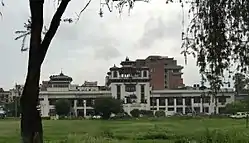 Bahadur Bhawan (initially known as Char Burja Durbar) is a Rana palace in Kathmandu, the capital of Nepal. The palace complex, located west of Jamal, north of Keshar Mahal was incorporated in an impressive and vast array of courtyards, gardens and buildings. Initially the palace was built by Bir Shumsher JBR and was rebuilt by Rudra Shumsher JBR after its destruction by fire in BS 1962.[1]
