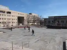 The road and small parking lot immediately in front of Bailey were converted into a pedestrian plaza which was opened to the public in 2007. The flagstones of the plaza are hewn from bluestone, similar to the material used to construct the Stone Row on the Arts Quad. Some of the stones were thermally treated to alter their colors to achieve a cosmetic effect.