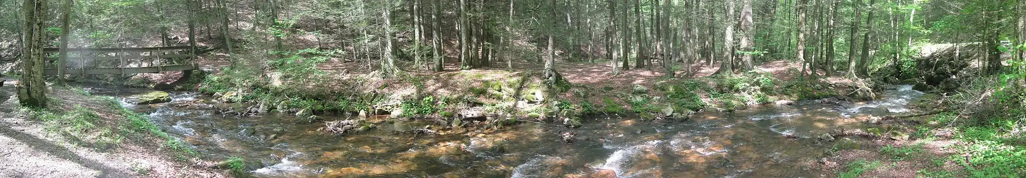 Panoramic view of Swift Run in the High Rock picnic area of Snyder Middleswarth Natural Area.