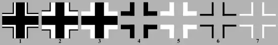 • one with wider white "flanks" surrounding the same width (25% wide as long from end to end for both versions) central black cross beneath the wings and on the fuselage sides of German military aircraft during the war years