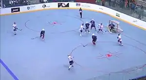 ![]() Ball hockey game between USA (Blue) and Slovakia (White) at 2011 World Ball Hockey Championship. | |