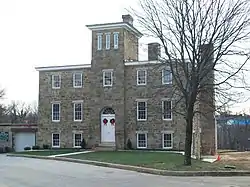 Baltimore County Jail is a historic jail located at Towson in Baltimore County, Maryland, United States. It was built in 1855 and is a two-story Italianate style stone building, measuring 52 feet wide and 62 feet deep. It consists of a five-bay-wide warden’s house with a central three story entry tower. In the rear is a cell block with three levels of jail cells and covered by a gable roof. The warden's house and tower features a low pyramidal hipped roof and 30-inch-thick (760 mm) walls. Attached to the warden's house is a stone garage built in 1940. It was used as a correctional facility until 2006.[2]