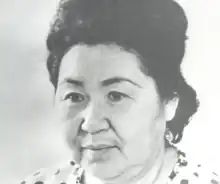 For a decade she served in the Ministry of Labor and Social Protection,[5] before being promoted in 1966 as Deputy Chair of the Council of Ministers and the Minister of Foreign Affairs,[1][3] the first Kazakh woman appointed to serve as Foreign Affairs Minister.[2][6] That same year, she was selected to serve on the Soviet of Nationalities of the Supreme Soviet of the Soviet Union.[2] She was the first Kazakh representative to the United Nations General Assembly.[2] and served for five and a half years in the post.[6] In the 1970 session (25th Session) of the general assembly, she worked to counter the establishment of a High Commissioner for Human Rights, as the USSR had ordered delegates to remove the issue from the agenda, as one that was not beneficial to the nation. Twice she used her diplomatic skill with Asian and African delegates to prevent the development of the post.[1][2] She was awarded for those efforts with the Order of the Red Banner of Labour.[1]