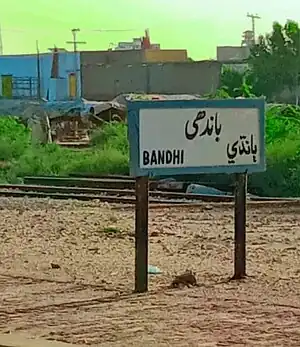 Bandhi Railway Station (Urdu: باندھی ریلوے اسٹیشن, Sindhi: ٻانڌي ريلوي اسٽيشن) is a railway station[1][2] located in town of Bandhi, in Shaheed Benazir Abad district, Sindh, Pakistan. It is located around 55 km from Nawabshah.[3]