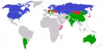 Green: members of the Federation of International Bandy not participating in this year's World Championship