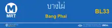 Bang Phai station (Thai: สถานีบางไผ่, pronounced [sā.tʰǎː.nīː bāːŋ pʰàj]) is a Bangkok MRT rapid transit station on the Blue Line, located above Phet Kasem Road located in Bangkok, Thailand, in the area known as "Bang Phai" (the beginning of Khlong Phasi Charoen). Not to be confused with the Khlong Bang Phai station on the Purple Line.[1]