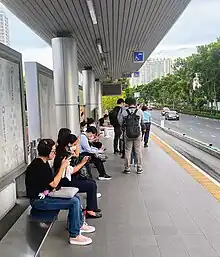 People waiting for the bus at a BRT station