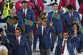 The Bangladesh Olympic Association selected a team of seven athletes, four men and three women, for the Games, competing in five different sports (archery, athletics, golf, shooting, and swimming). Six of them made their Olympic debut, with freestyle swimmer Mahfizur Rahman Sagor returning for his second Olympic appearance from London 2012. Majority of the roster received their spots by wild card entries or Tripartite invitations, without having qualified. Meanwhile, golfer Siddikur Rahman, the only qualified sportsman of the team, was selected to carry the Bangladeshi flag in the opening ceremony.[1] Bangladesh, however, has yet to win an Olympic medal.