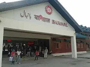 Banihal railway station (station code: BAHL), a part of Jammu–Baramulla line, is situated in notified area of Banihal in Ramban district, Jammu and Kashmir. It was commissioned on 26 June 2013 and passenger trains run from Banihal to Qazigund. The station was inaugurated by former prime minister Manmohan Singh and UPA Chairperson Sonia Gandhi on the same day at 2.22 pm. They enjoyed the 12-minute ride in train through Pir Panjal tunnel up to Qazigund with 100 students, mostly girls, of the Banihal Higher Secondary School, and made the 17.8-km ride back to Banihal, passing through the tunnel again, the second longest in Asia.[1]